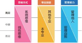 專業技能的此消彼長。隨著職位的升高,與本專業領域以外的人和事的交互必然增多,完成工作時所需的其他專業領域的知識將逐漸變多。